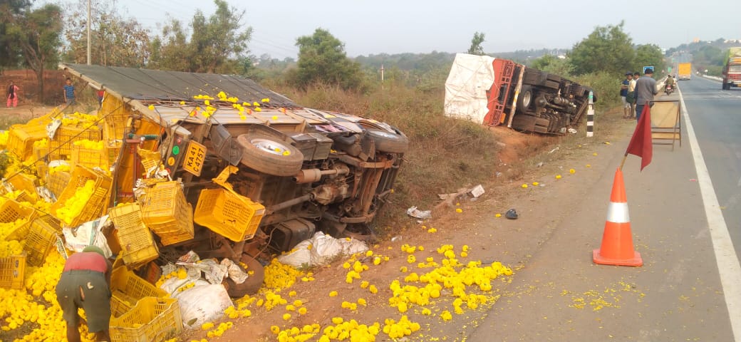 ಹುಬ್ಬಳ್ಳಿಯಿಂದ ಬೆಳಗಾವಿಗೆ ಹೂವು ಹೇರಿಕೊಂಡು ಬೆಳಗಾವಿಯತ್ತ ಹೊರಟಿದ್ದ ಮಿನಿ ಗೂಡ್ಸ್ ವಾಹನಕ್ಕೆ ಲಾರಿಯೊಂದು ವೇಗವಾಗಿ ಬಂದು ಡಿಕ್ಕಿ ಹೊಡೆದಿದೆ. ಇದರಿಂದ ಹೂವುಗಳೇಲ್ಲ ರಸ್ತೆಯ ಅಕ್ಕಪಕ್ಕದಲ್ಲಿ ಚೆಲ್ಲಾಪಿಲ್ಲಿಯಾಗಿವೆ.