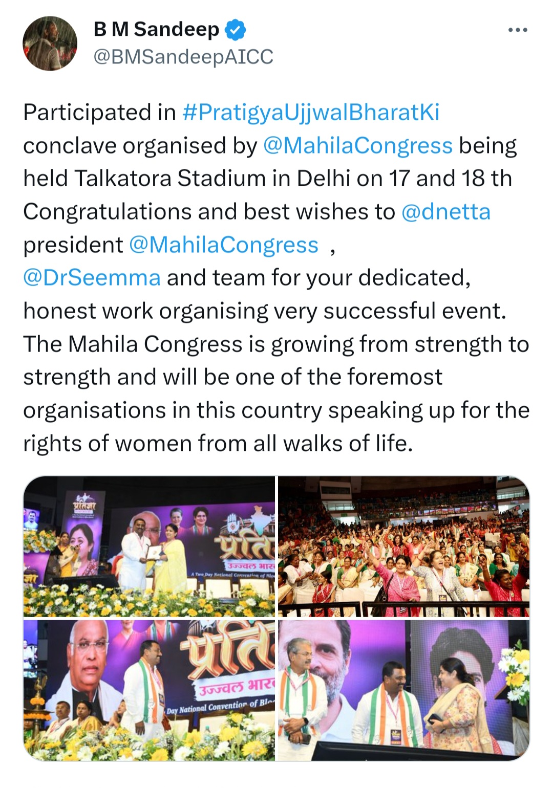 ಕಾಂಗ್ರೆಸ್ ಮಹಿಳಾ ರಾಷ್ಟ್ರೀಯ ಅಧ್ಯೆಕ್ಷೆಯಾದ ನೆಟ್ಟಾ ಡಿಸೋಜಾ ಮಾರ್ಗದರ್ಶನದಲ್ಲಿ ಡಾ.ಸೀಮಾ ಸಾಧೀಕಾ ಅವರು ಹಲವು ಮಹಿಳಾ ಕಾರ್ಯಕ್ರಮಗಳನ್ನ ಆಯೋಜನೆ ಮಾಡುವಲ್ಲಿ ಯಶಸ್ವಿಯಾಗಿದ್ದಾರೆ. ಕಳೆದ ವಾರ ನವದೆಹಲಿಯಲ್ಲಿ ನಡೆದ ಮಹಿಳಾ ಕಾಂಗ್ರೆಸ್ ಸಮಾವೇಶ ಯಶಸ್ವಿಗೊಂಡಿದ್ದು, ಇದಕ್ಕೆ ಸ್ವತಃ ರಾಹುಲ ಗಾಂಧಿಯವರು ಮೆಚ್ಚುಗೆ ವ್ಯಕ್ತಪಡಿಸಿದ್ದಾರೆ.