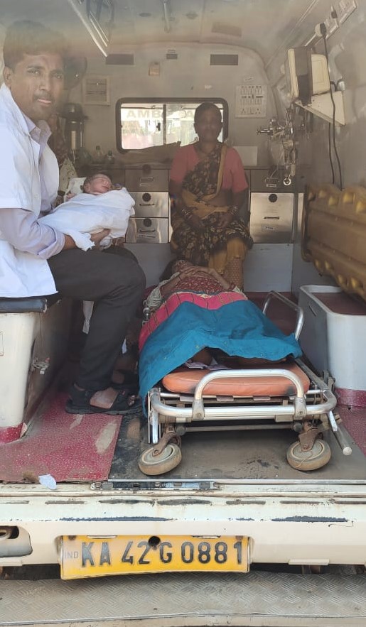 ಚಂದ್ರಾಪುರದ ಗ್ರಾಮದ ಶಾಹಿನ್ ಶೌಕತ್ ಅಲಿ ಸೌದಾಗಾರ ಎಂಬ ಮಹಿಳೆಗೆ ತೀವ್ರ ಥರದ ಹೆರಿಗೆ ನೋವು ಕಾಣಿಸಿಕೊಂಡ ಹಿನ್ನೆಲೆಯಲ್ಲಿ ಅಂಬ್ಯುಲೆನ್ಸಗೆ ಕಾಲ್ ಮಾಡಲಾಗಿತ್ತು. ಈ ಹಿನ್ನೆಲೆಯಲ್ಲಿ ಪೈಲಟ್ ದೇವೇಂದ್ರ ಗಂಗಾಧರ ಎಂಬುವವರು ಮಹಿಳೆಯನ್ನ ತರುವಾಗಲೇ, ತೀವ್ರ ಥರದ ನೋವು ಮಹಿಳೆಗೆ ಕಾಣಿಸಿಕೊಂಡಿದೆ.