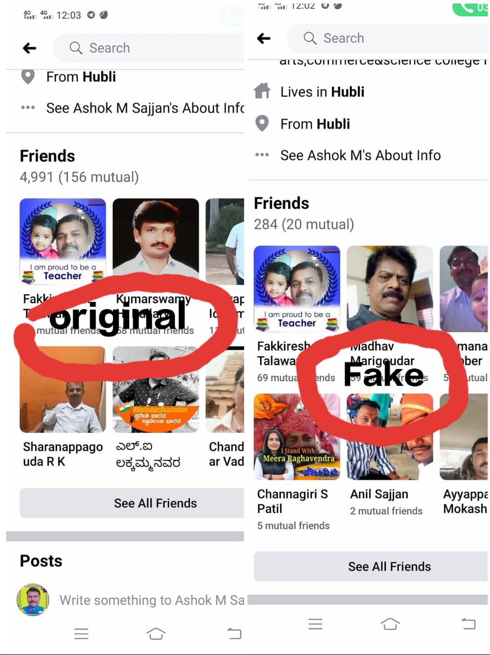 ಸನ್ಮಾನ್ಯರೆ ನಾನು ಅಶೋಕ.ಎಮ್.ಸಜ್ಜನ. ಸಹ ಶಿಕ್ಷಕ ಸ.ಹಿ.ಪ್ರಾ.ಕ.ಹೆ.ಶಾಲೆ.ಹೆಬಸೂರ.ತಾ.ಹುಬ್ಬಳ್ಳಿ. ರಾಜ್ಯಾಧ್ಯಕ್ಷರು ಕರ್ನಾಟಕ ಸರ್ಕಾರಿ ಗ್ರಾಮೀಣ ಪ್ರಾಥಮಿಕ ಶಾಲಾ ಶಿಕ್ಷಕರ ಸಂಘ.ರಿ.ರಾಜ್ಯ ಘಟಕ ಹುಬ್ಬಳ್ಳಿ.ಈ ಮೂಲಕ ವಿನಂತಿಸಿಕೊಳ್ಳುವುದೇನೆಂದರೆ.ನನ್ನ FACE BOOK ಖಾತೆಯ ನಕಲಿ ಖಾತೆ ತೆರೆದು ನನ್ನ ಹೆಸರಿನಲ್ಲಿ ಹಣ ಕೇಳುತ್ತಿದ್ದಾರೆ.ನನ್ನ ದೂರವಾಣಿ ಸಂಖೆ*9036124574 ಹಾಗೂ 9916846576 ಬೇರೆ ಯಾವ ನಂ.ಇಲ್ಲಾ..