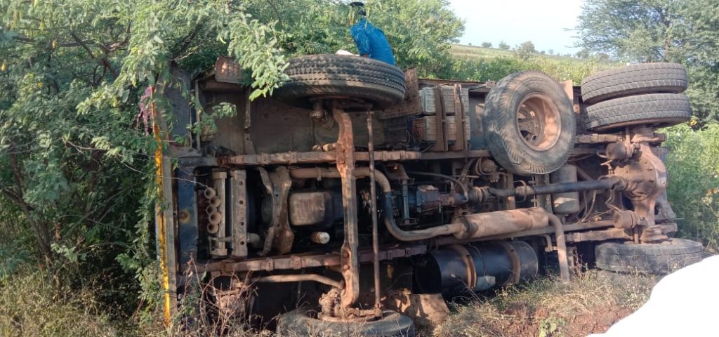ಬ್ಯಾಹಟ್ಟಿ ಬಳಿ ಮರಳು ತುಂಬಿದ ಟಿಪ್ಪರ್ ಪಲ್ಟಿ