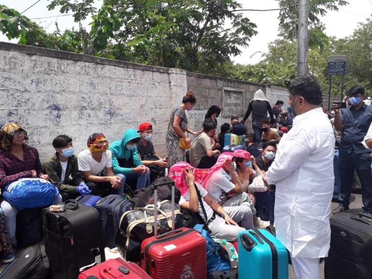 ಬೆಂಗಳೂರು: ತಮ್ಮ ಊರುಗಳಿಗೆ ವಾಪಸ್ಸಾಗಲು ನೋಂದಾವಣಿಗಾಗಿ ಬೆಂಗಳೂರಿನ ಅರಮನೆ ಮೈದಾನದಲ್ಲಿ ಜಮಾಯಿಸಿದ್ದ ಹೊರ ರಾಜ್ಯಗಳ ವಲಸಿಗರನ್ನು ಕೆಪಿಸಿಸಿ ಅಧ್ಯಕ್ಷ ಡಿಕೆ ಶಿವಕುಮಾರ್ ಭೇಟಿ ಮಾಡಿ ಕುಂದುಕೊರತೆಗಳನ್ನು ಆಲಿಸಿದರು....
