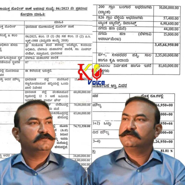 ಧಾರವಾಡ: ಬೆಳಗಾವಿಯ ಮಹಾನಗರ ಪಾಲಿಕೆಯಲ್ಲಿ ಸಹಾಯಕ ಆಯುಕ್ತರಾಗಿದ್ದ ಧಾರವಾಡ ಮೂಲದ ಸಂತೋಷ ಅಸನಿಶೆಟ್ಟರ ಅಕ್ರಮ ಆಸ್ತಿಯ ವಿವರವನ್ನ ಲೋಕಾಯುಕ್ತರು ಹೊರ ಹಾಕಿದ್ದು, ಕುಬೇರನ ಆಸ್ತಿ ಬಹಿರಂಗಗೊಂಡಿದೆ. ಆಸ್ತಿಯನ್ನ...