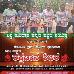 ಧಾರವಾಡ: ವಿಶ್ವ ಕುಂದಾಪ್ರ ಕನ್ನಡ ಹಬ್ಬದ ಅಂಗವಾಗಿ ನಾಳೆ ಧಾರವಾಡದಲ್ಲಿ ಭಾರ್ಗವ ಬಳಗವೂ ರಕ್ತದಾನ ಶಿಬಿರವನ್ನ ಪಿಬಿ ರಸ್ತೆಯಲ್ಲಿರುವ ಬಾವಸಾರ ಮಂಗಲ ಕಾರ್ಯಾಲಯದಲ್ಲಿ ಹಮ್ನಿಕೊಂಡಿದೆ. ರಕ್ತದಾನ ಶಿಬಿರಕ್ಕೆ...