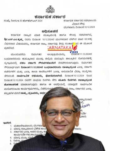 ಬೆಂಗಳೂರು: ಮಾಜಿ ಮುಖ್ಯಮಂತ್ರಿ ಎಸ್.ಎಂ.ಕೃಷ್ಣ ಅವರ ನಿಧನದ ಹಿನ್ನೆಲೆಯಲ್ಲಿ ನಾಳೆ ಸರಕಾರಿ ಶಾಲೆ, ಕಾಲೇಜು, ಸರಕಾರಿ ಕಚೇರಿಗಳಿಗೆ ರಜೆ ಘೋಷಣೆ ಮಾಡಿ ಸರಕಾರ ಆದೇಶ ಹೊರಡಿಸಿದೆ. ರಾಜ್ಯದಲ್ಲಿ...