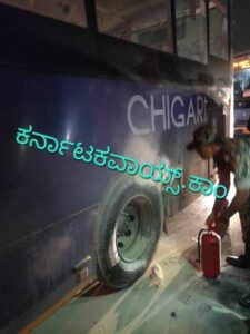 ಚಿಗರಿ ಬಸ್ ಗೆ ಹತ್ತಿದ ಬೆಂಕಿ; ತಪ್ಪಿದ ಬಾರಿ ದುರಂತ