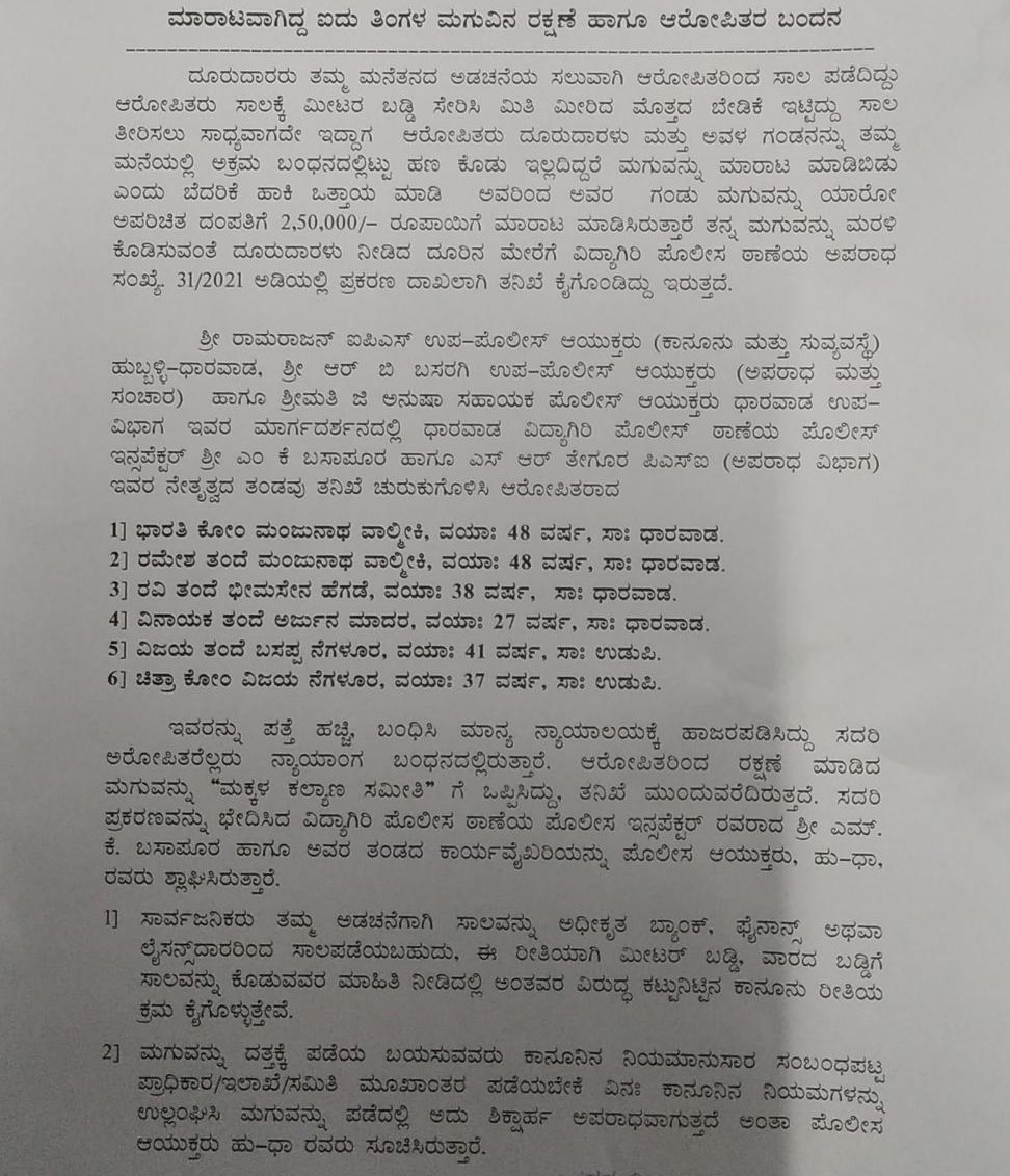 ಸಾಲ ವಸೂಲಿಗೆ ಮಗುವನ್ನೇ ಮಾರಿಸಿದ್ದ ಧಾರವಾಡದ ದುರುಳರು…!
