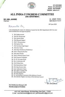 ಸಲಹಾ ಮಂಡಳಿ ಸಭೆ ಎಐಸಿಸಿ ಹಿಂದುಳಿದ ವರ್ಗಗಳ ವಿಭಾಗದ ಅಧ್ಯಕ್ಷರಾದ ಡಾ. ಅನಿಲ್ ಜೈಹಿಂದ್ ಅವರ ಅಧ್ಯಕ್ಷತೆಯಲ್ಲಿ ಜುಲೈ 15ರಂದು ಬೆಂಗಳೂರಿನಲ್ಲಿ ನಡೆಯಲಿದೆ.