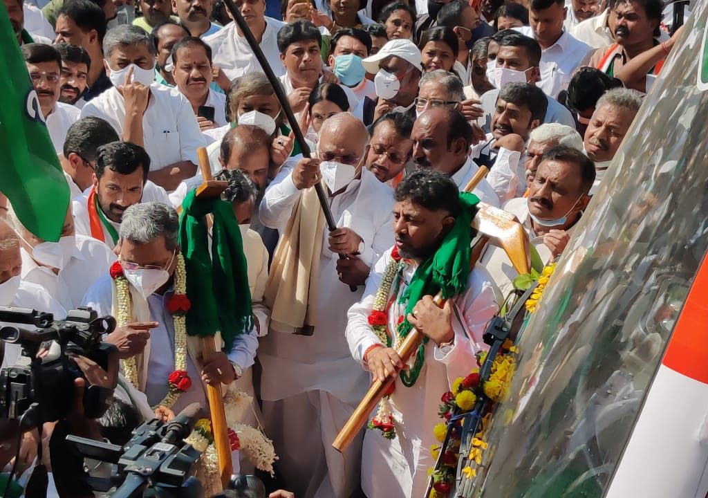 ಕೇಂದ್ರ ಹಾಗೂ ರಾಜ್ಯ ಬಿಜೆಪಿ ಸರಕಾರದ ವೈಫಲ್ಯಗಳ ವಿರುದ್ಧ ಇಂದಿನಿಂದ ಆರಂಭಿಸಿರುವ “ಜನಧ್ವನಿ ಜಾಥಾ”ಗೆ ಕೆಪಿಸಿಸಿ ಅಧ್ಯಕ್ಷ ಡಿ.ಕೆ. ಶಿವಕುಮಾರ್, ರಾಜ್ಯಸಭೆ ವಿರೋಧ ಪಕ್ಷದ ನಾಯಕ ಮಲ್ಲಿಕಾರ್ಜುನ ಖರ್ಗೆ, ವಿಧಾನಸಭೆ ವಿರೋಧ ಪಕ್ಷದ ನಾಯಕ ಸಿದ್ದರಾಮಯ್ಯ, ವಿಧಾನ ಪರಿಷತ್ ವಿರೋಧ ಪಕ್ಷದ ನಾಯಕ ಎಸ್.ಆರ್. ಪಾಟೀಲ್, ಕೆಪಿಸಿಸಿ ಕಾರ್ಯಾಧ್ಯಕ್ಷರಾದ ಸಲೀಂ ಅಹಮದ್, ಈಶ್ವರ ಖಂಡ್ತೆ, ರಾಮಲಿಂಗಾರರಡ್ಡಿ, ಧೃವನಾರಾಯಣ್ ಮತ್ತಿತರ ಮುಖಂಡರು ಕ್ವೀನ್ಸ್ ರಸ್ತೆಯಲ್ಲಿರುವ ಕಾಂಗ್ರೆಸ್ ಕಚೇರಿ ಮುಂದೆ ಪೂಜೆ ಸಲ್ಲಿಸುವ ಮೂಲಕ ಚಾಲನೆ ನೀಡಿದರು.