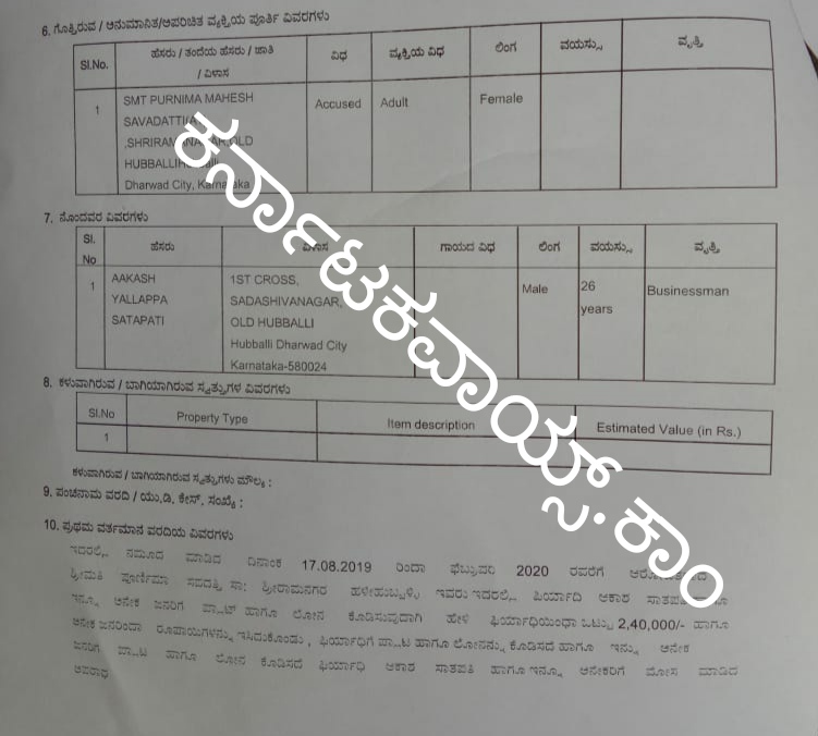 ಕೆಪಿಸಿಸಿ ಅಧ್ಯಕ್ಷ ಡಿ.ಕೆ.ಶಿವುಕುಮಾರ ಅವರ ಕಪ್ಪು ಹಣವನ್ನ ನಾವೂ ಲೋನ್ ಮುಖಾಂತರ ಕೊಡುತ್ತಿದ್ದೇವೆ ಎಂದು ಹೇಳಿಕೊಳ್ಳುತ್ತ ಜನರನ್ನ ವಂಚನೆ ಮಾಡಿರುವ ಮಹಿಳೆಯನ್ನ ಹಳೇಹುಬ್ಬಳ್ಳಿ ರಾಮನಗರದ ಪೂರ್ಣಿಮಾ ಮಹೇಶ ಸವದತ್ತಿ ಎಂದು ಗುರುತಿಸಲಾಗಿದ್ದು, ಇವರ ವಿರುದ್ಧ ಹಳೇಹುಬ್ಬಳ್ಳಿ ಪೊಲೀಸ್ ಠಾಣೆಯಲ್ಲಿ ಪ್ರಕರಣ ದಾಖಲಾಗಿದೆ.
