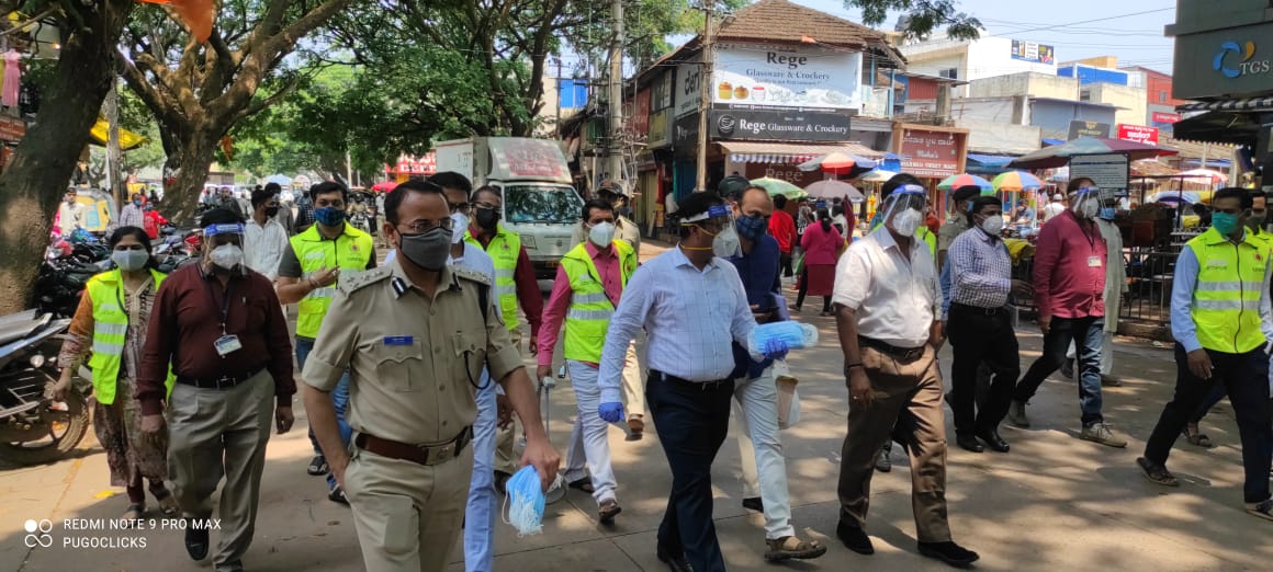 ಧಾರವಾಡ ನಗರದಲ್ಲಿ ಕೊರೋನಾ ಸೋಂಕಿತರ ಸಂಖ್ಯೆ ಹೆಚ್ಚಾಗುತ್ತಿರುವ ಹಿನ್ನೆಲೆಯಲ್ಲಿ ಜಿಲ್ಲಾಡಳಿತ, ಜನಜಾಗೃತೆ ಮಾಡಲು ಮುಂದಾಗಿದೆ. ಮಾರುಕಟ್ಟೆ ಪ್ರದೇಶದಲ್ಲಿ ಬರುವ ಗ್ರಾಮೀಣ ಪ್ರದೇಶದ ಜನರಿಗೆ ತಿಳುವಳಿಕೆ ನೀಡುವುದಕ್ಕೂ ಜಿಲ್ಲಾಡಳಿತ ಮುಂದಾಗಿರುವುದು ವಿಶೇಷವಾಗಿದೆ.