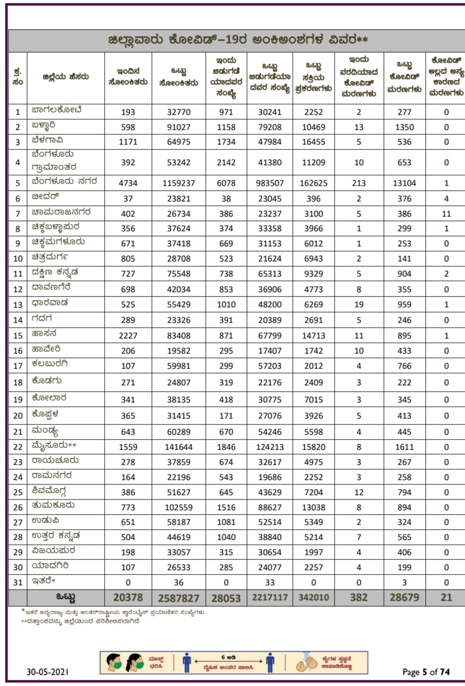 ರಾಜ್ಯದಲ್ಲಿಂದು 20378 ಸೋಂಕಿತರು- 28053 ಗುಣಮುಖ: 382 ಸಾವು…!
