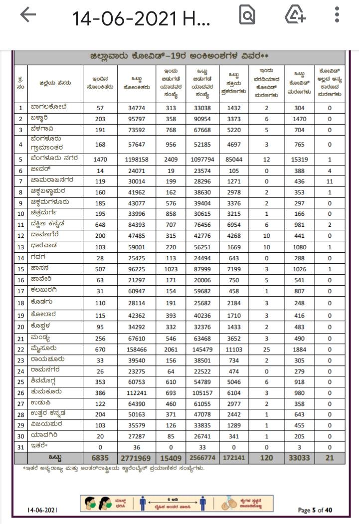 ರಾಜ್ಯದಲ್ಲಿ ಮೈಸೂರು ಜಿಲ್ಲೆಯಲ್ಲಿ ಅತಿ ಹೆಚ್ಚು 25 ಸಾವುಗಳು ಸಂಭವಿಸಿದ್ದು, ಬೆಂಗಳೂರು ನಗರದಲ್ಲಿ 1470 ಕೊರೋನಾ ಪ್ರಕರಣಗಳು ಪತ್ತೆಯಾಗಿವೆ.