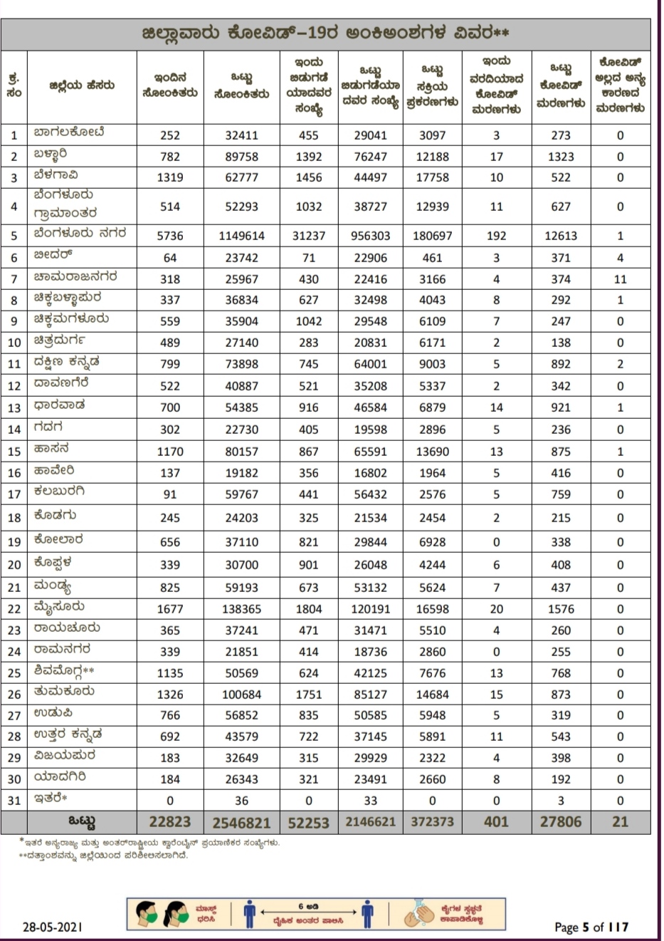 ಬೆಂಗಳೂರೊಂದರಲ್ಲಿ 5736 ಕೊರೋನಾ ಪ್ರಕರಣಗಳು ಪತ್ತೆಯಾಗಿದ್ದು, 192 ಸೋಂಕಿತರು ಸಾವಿಗೀಡಾಗಿದ್ದಾರೆ.