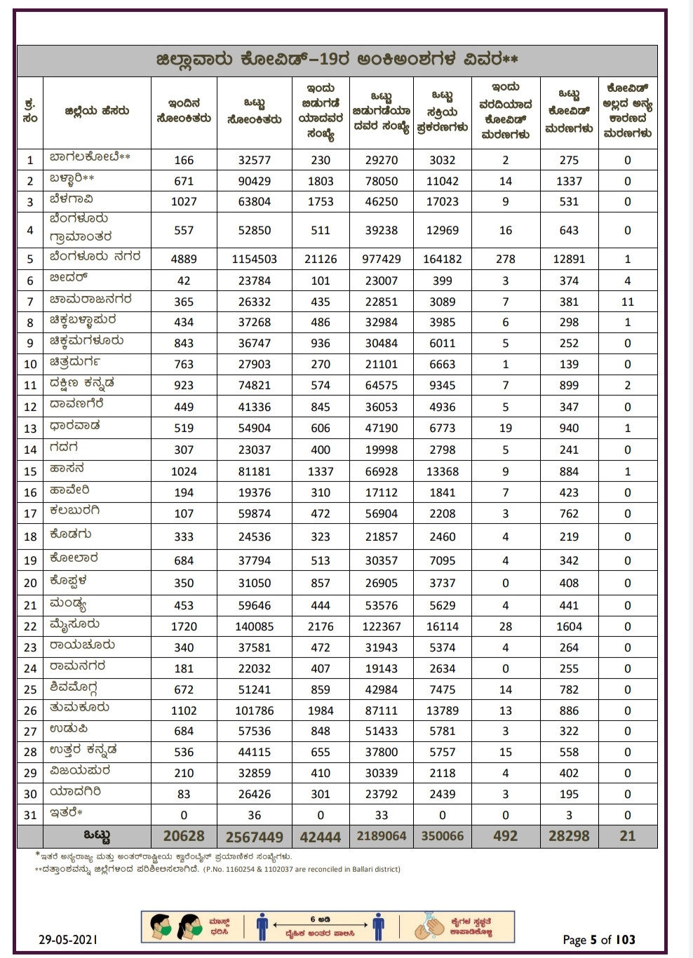ಬೆಂಗಳೂರು: ರಾಜ್ಯದಲ್ಲಿಂದು 42444 ಕೊರೋನಾ ಸೋಂಕಿತರು ಚಿಕಿತ್ಸೆ ಪಡೆದು ಗುಣಮುಖರಾಗಿದ್ದು, 20628 ಹೊಸ ಕೊರೋನಾ ಪಾಸಿಟಿವ್ ಪ್ರಕರಣಗಳು ಪತ್ತೆಯಾಗಿವೆ.