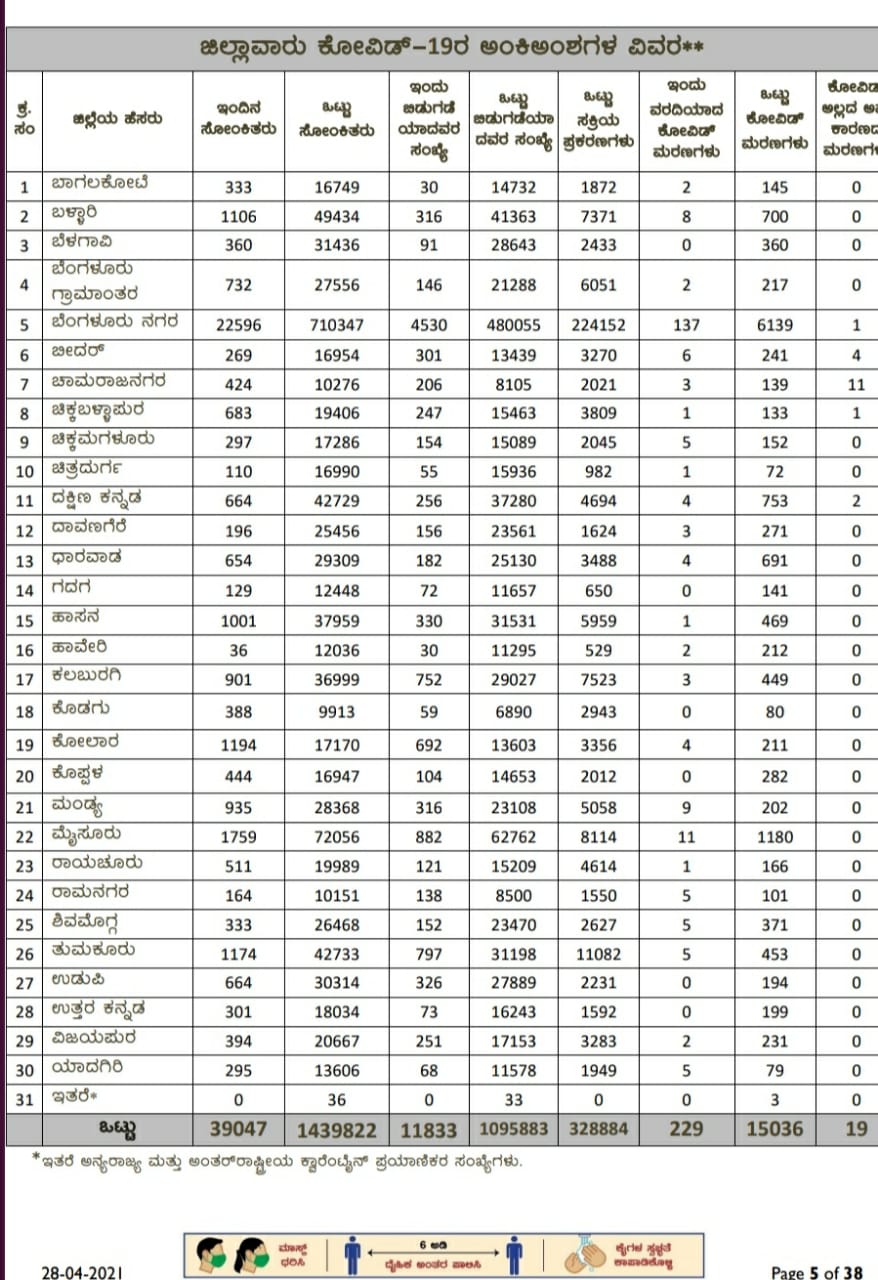 ಬೆಂಗಳೂರು: ಕೊರೋನಾ ಎರಡನೇಯ ಅಲೆಯು ಅತೀ ವೇಗವಾಗಿಯೇ ಬೆಳೆಯುತ್ತಿದ್ದು, ರಾಜ್ಯದಲ್ಲಿಂದು 39047 ಕೊರೋನಾ ಪಾಸಿಟಿವ್ ಪ್ರಕರಣಗಳು ಪತ್ತೆಯಾಗಿದ್ದು, ರಾಜ್ಯದಲ್ಲಿಂದು 229 ಸೋಂಕಿತರು ಸಾವಿಗೀಡಾಗಿದ್ದಾರೆ.