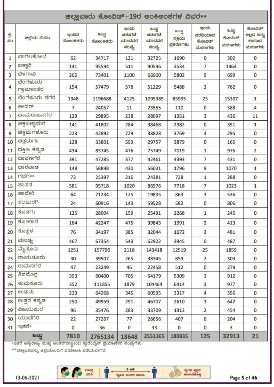 ಕೊರೋನಾ ಪ್ರಕರಣಗಳು ಕಡಿಮೆಯಾಗುತ್ತಿದ್ದು, ವಿವಿಧ ಜಿಲ್ಲೆಯ ವಿವರ ಇಲ್ಲಿದೆ ನೋಡಿ..