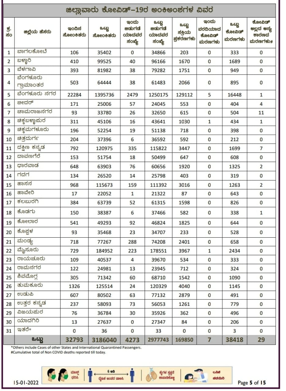 ಕೊರೊನಾ ವೈರಸ್ ಕರ್ನಾಟಕ ರಾಜ್ಯ ಅಲರ್ಟ್ 15-01-2022