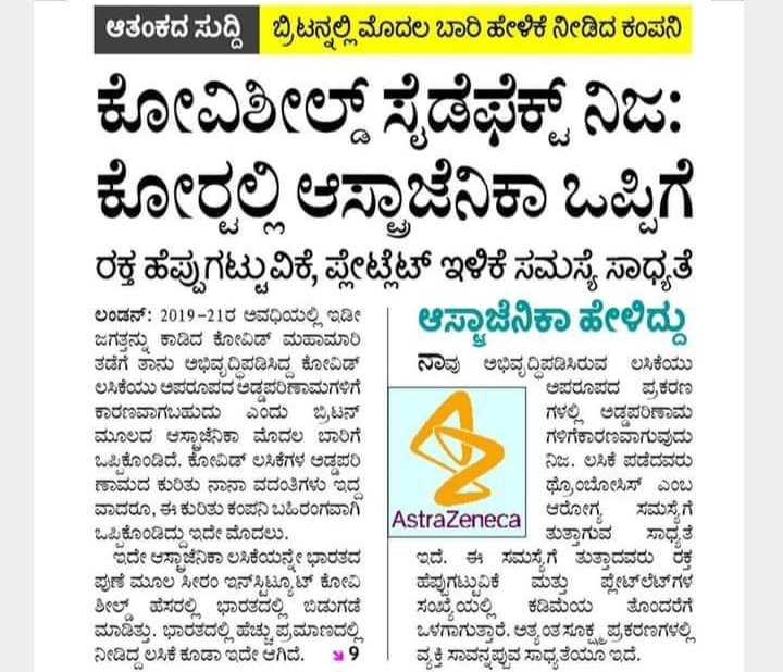 ಆತಂಕದ ಸುದ್ದಿ: ಕೋವಿಶಿಲ್ಡ್ ಸೈಡ್ ಎಫೆಕ್ಟ್ ನಿಜವೆಂದು ಒಪ್ಪಿಕೊಂಡ ಕಂಪನಿ…!!!