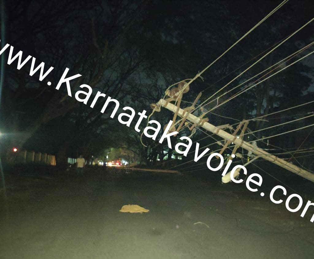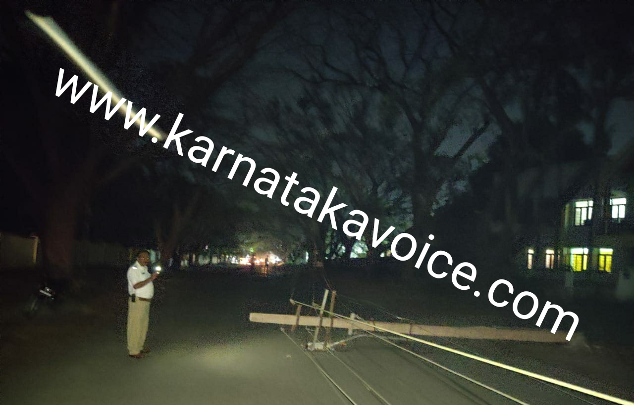 ನಾರಾಯಣಪುರದ ಪ್ರಮುಖ ಪ್ರದೇಶದಲ್ಲಿನ ದೊಡ್ಡದೊಂದು ಮರದ ಟೊಂಗೆ ವಿದ್ಯುತ್ ತಂತಿಯ ಮೇಲೆ ಬಿದ್ದಿದೆ. ಅದರ ಭಾರ ತಾಳದೇ ಒಂದು ಕಂಬ ಬಿದ್ದು, ಅದಕ್ಕೆ ಕನೆಕ್ಟ್ ಆಗಿದ್ದ ಎಂಟು ಕಂಬಗಳು ನೆಲಕ್ಕುರಳಿವೆ.