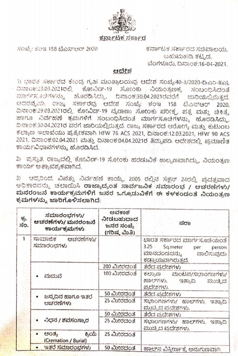 ಗೃಹ ಸಚಿವ, ಕಂದಾಯ ಸಚಿವ ಹಾಗೂ ಆರೋಗ್ಯ ಮತ್ತು ಕುಟುಂಬ ಕಲ್ಯಾಣ ಸಚಿವರ ಅಧ್ಯಕ್ಷತೆಯಲ್ಲಿ ನಡೆದ ಸಭೆಯ ನಿರ್ದೇಶನದಂತೆ ಜಿಲ್ಲಾಧಿಕಾರಿಗಳು ಆದೇಶವನ್ನ ಹೊರಡಿಸಿದ್ದಾರೆ.