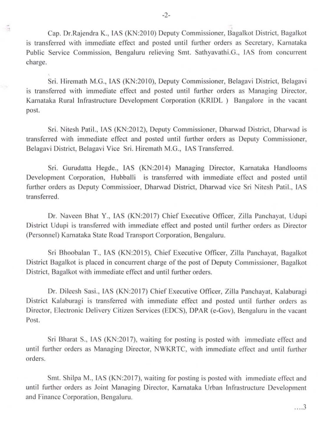 ಬೆಳಗಾವಿ ಜಿಲ್ಲಾಧಿಕಾರಿಯಾಗಿ ವರ್ಗಾವಣೆ ಮಾಡಲಾಗಿದ್ದು, ವಾಯುವ್ಯ ರಸ್ತೆ ಸಾರಿಗೆ ಸಂಸ್ಥೆಯ ಎಂಡಿಯಾಗಿದ್ದ ಗುರುದತ್ತ್ ಹೆಗಡೆಯವರನ್ನ ಧಾರವಾಡ ಜಿಲ್ಲಾಧಿಕಾರಿಯಾಗಿ ವರ್ಗಾವಣೆ ಮಾಡಲಾಗಿದೆ.