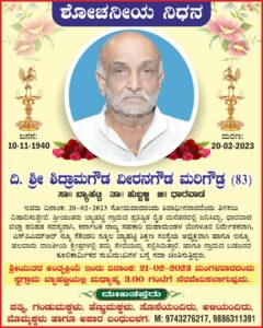 *ಧಾರವಾಡ ಮಾಜಿ ಜಿಲ್ಲಾ ಪರಿಷತ್ ಸದಸ್ಯರು,ಎಸ್ ಪಿ.ಎಂ.ಆರ್.ನ್ಯೂ ಸೆಕೆಂಡರಿ ಸ್ಕೂಲ್ ಆಡಳಿತ ಮಂಡಳಿ ಅಧ್ಯಕ್ಷರು, ಮಾಜಿ.ಹುಬ್ಬಳ್ಳಿ ಎ.ಪಿ.ಎಂ.ಸಿ ಸದಸ್ಯರು ನಮ್ಮೂರಿನ ಮುತ್ಸದ್ದಿ ರಾಜಕಾರಣಿ,ಗ್ರಾಮದ ಬಡವರ ಕಣ್ಮಣಿ ಶ್ರೀ ಶಿದ್ರಾಮಗೌಡ್ರ ವಿ ಮರಿಗೌಡ್ರ ಇಂದು ನಿಧನರಾದರೆಂದು ತಿಳಿಸಲು ವಿಷಾದಿಸುತ್ತೇವೆ.ಭಾವಪೂರ್ಣ ಶ್ರದ್ಧಾಂಜಲಿ..ಆ ದೇವರು ನಿಮ್ಮ ಅಗಲಿಕೆಯ ನೋವನ್ನು ಸಹಿಸುವ ಶಕ್ತಿ ನಿಮ್ಮ ಕುಟುಂಬಕ್ಕೆ ನೀಡಲಿ ಎಂದು ಪ್ರಾರ್ಥಿಸುತ್ತೇನೆ.. ನೀವು ಇಲ್ಲವಾದರೂ ನಿಮ್ಮ ಮೌಲ್ಯಗಳು,ಆದರ್ಶ ತತ್ತ್ವಗಳು ನಿಮ್ಮ ಸಾಮಾಜಿಕವಾಗಿ ನೀವು ನೀಡಿರುವ ಮಾರ್ಗದರ್ಶನ ಸದಾ ಚಿರಸ್ಮರಣೀಯ..ಓಂ ಶಾಂತಿ.. ಮತ್ತೆ ಹುಟ್ಟಿ ಬನ್ನಿ ಧಣಿ..*
