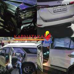 ಧಾರವಾಡ: ಬಿಆರ್ಟಿಎಸ್ ಮಾರ್ಗದಿಂದ ಹೊರಗೆ ಬಂದ ಪಾರ್ಚುನರ್ ವಾಹನಕ್ಕೆ ತಕ್ಷಣವೇ ಎದುರಿಗೆ ಬಂದ ಟ್ರ್ಯಾಕ್ಸ್ ವಾಹನವೊಂದು ಡಿಕ್ಕಿ ಹೊಡೆದ ಪರಿಣಾಮ ಅಡ್ಟೋಕೇಟ್ ಶರಣು ಅಂಗಡಿ ಅವರಿದ್ದ ವಾಹನ ಸಂಪೂರ್ಣ ಜಖಂಗೊಂಡಿದ್ದು, ಶರಣು ಅವರು ಕೂದಲೆಳೆ ಅಂತರದಲ್ಲಿ ಪಾರಾಗಿದ್ದಾರೆ.