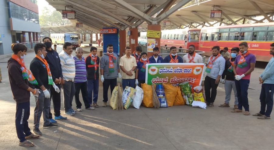 ಇಂದು ಬೆಳಿಗ್ಗೆ ಧಾರವಾಡ ಹಳೇ ಬಸ್ ನಿಲ್ದಾಣದಲ್ಲಿ ಬಿಜೆಪಿ ಯುವ ಮೋರ್ಚಾ ಅಧ್ಯಕ್ಷ ಶಕ್ತಿ ಹಿರೇಮಠ ನೇತೃತ್ವದಲ್ಲಿ ಸ್ವಚ್ಚತೆ ಕಾರ್ಯ ಆರಂಭಿಸಿದರು. ಪೌರ ಕಾರ್ಮಿಕರು ಬರುವನ್ನ ಮುನ್ನವೇ ಬಸ್ ನಿಲ್ದಾಣವನ್ನ ಕಸ ಗೂಡಿಸಿ ಸ್ವಚ್ಚ ಮಾಡಿದ್ರು.