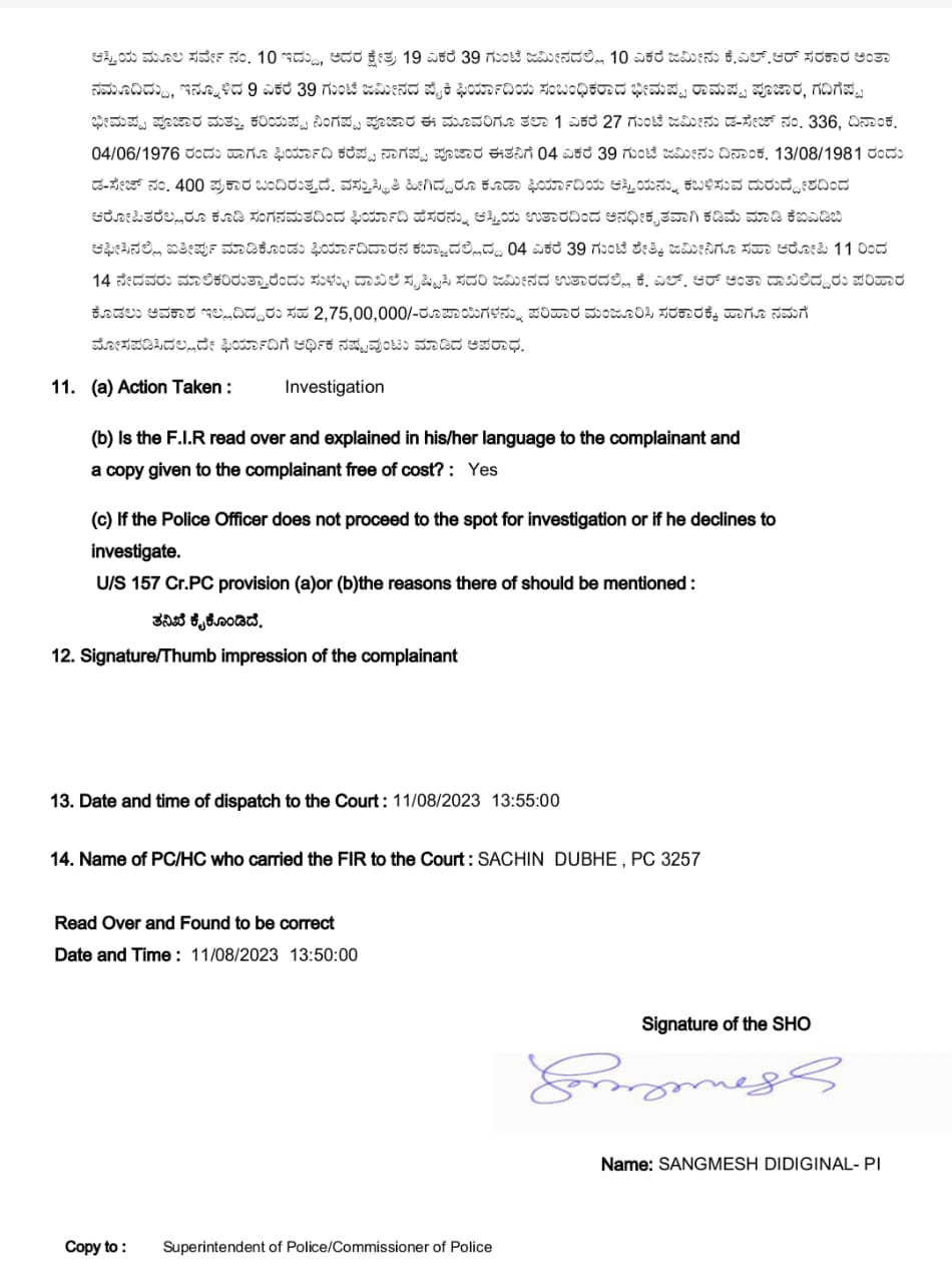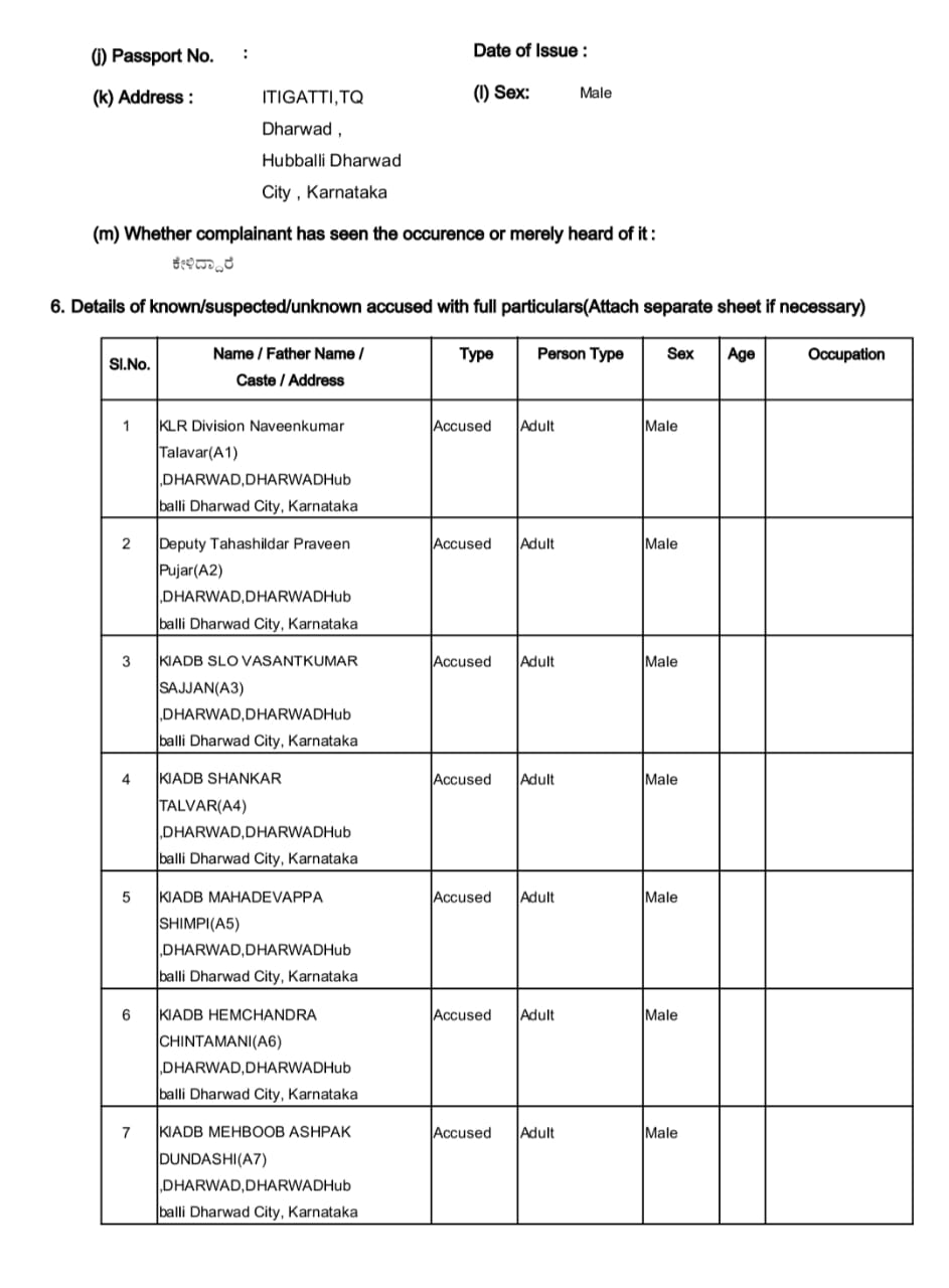 ಧಾರವಾಡದ ಉಪತಹಶೀಲ್ದಾರ್, ಕೆಎಲ್ಆರ್ ಸೇರಿ ಹಲವರಿಂದ ಭೂ ಕಬಳಿಸಿ, ಕೋಟಿ ಕೋಟಿ ಹಣ ವಂಚನೆ- FIR