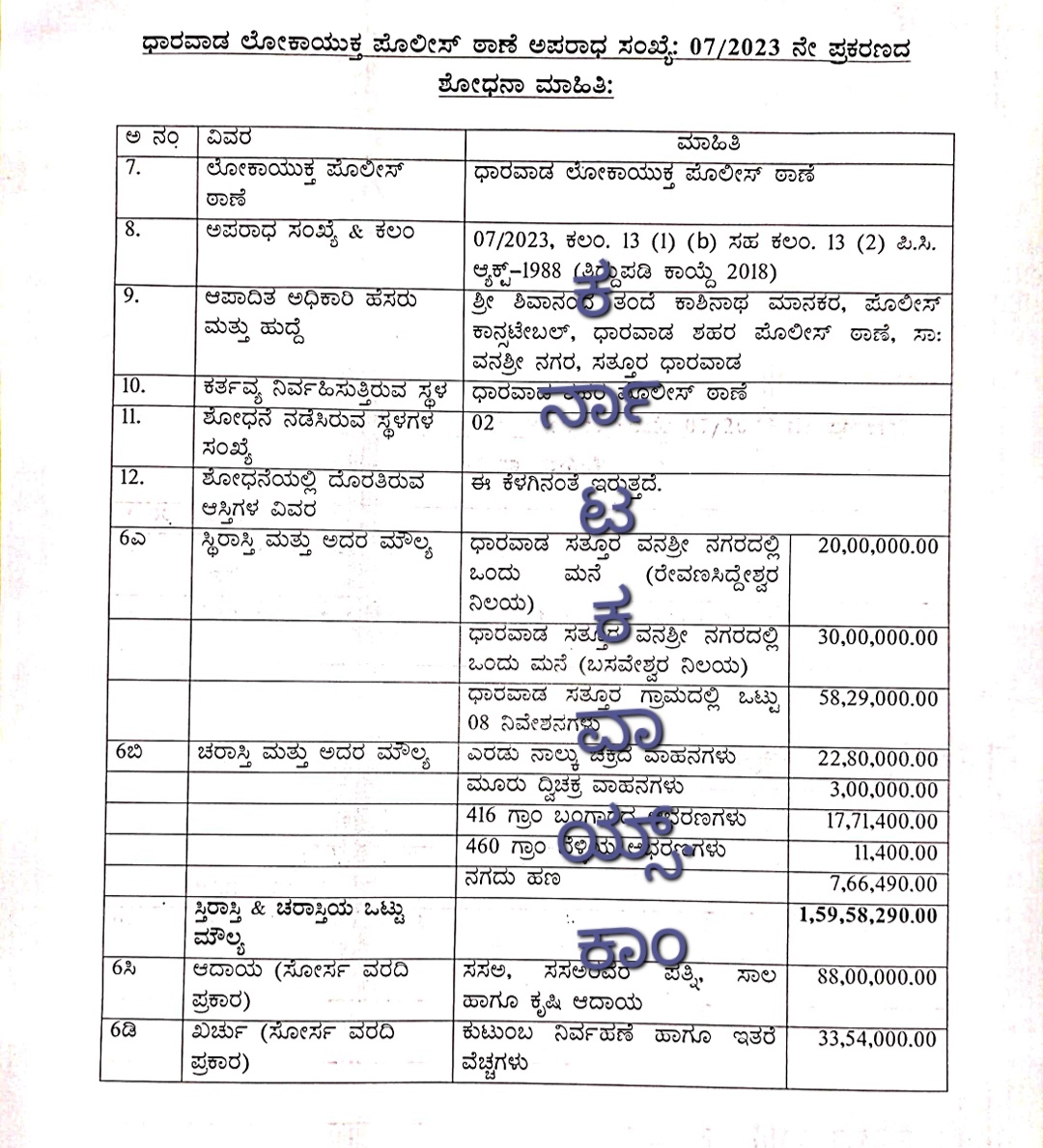 ಧಾರವಾಡದ “ಕೋಟ್ಯಾಧೀಶ ಪೊಲೀಸ್” ಬಂಡವಾಳ ಬಯಲು ಮಾಡಿ “FIR” ದಾಖಲಿಸಿದ ಲೋಕಾಯುಕ್ತರು…