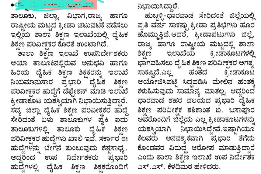 ಕನ್ನಡದ ಪ್ರಮುಖ ಪತ್ರಿಕೆಯಲ್ಲಿ ನವಲೂರ ಶಾಲೆಯಿಂದ ಡೆಪ್ಟೇಟೇಷನ್ (ಇಲ್ಲದ ಪೋಸ್ಟ್) ಮಾಡಿಸಿಕೊಂಡು ಹಲವು ವರ್ಷಗಳಿಂದ ಇಲ್ಲಿಯೇ ಅಲೆದಾಡುತ್ತಿರುವ ಶಶಿಕಾಂತ ಬಸಾಪುರ ಅವರ ಬಗ್ಗೆ ಕೆಲವರು ಅನಾವಶ್ಯಕ ಆರೋಪ ಮಾಡುತ್ತಿದ್ದಾರೆಂದು ಹೇಳಿರುವುದು ಪ್ರಿಂಟ್ ಆಗಿದೆ.