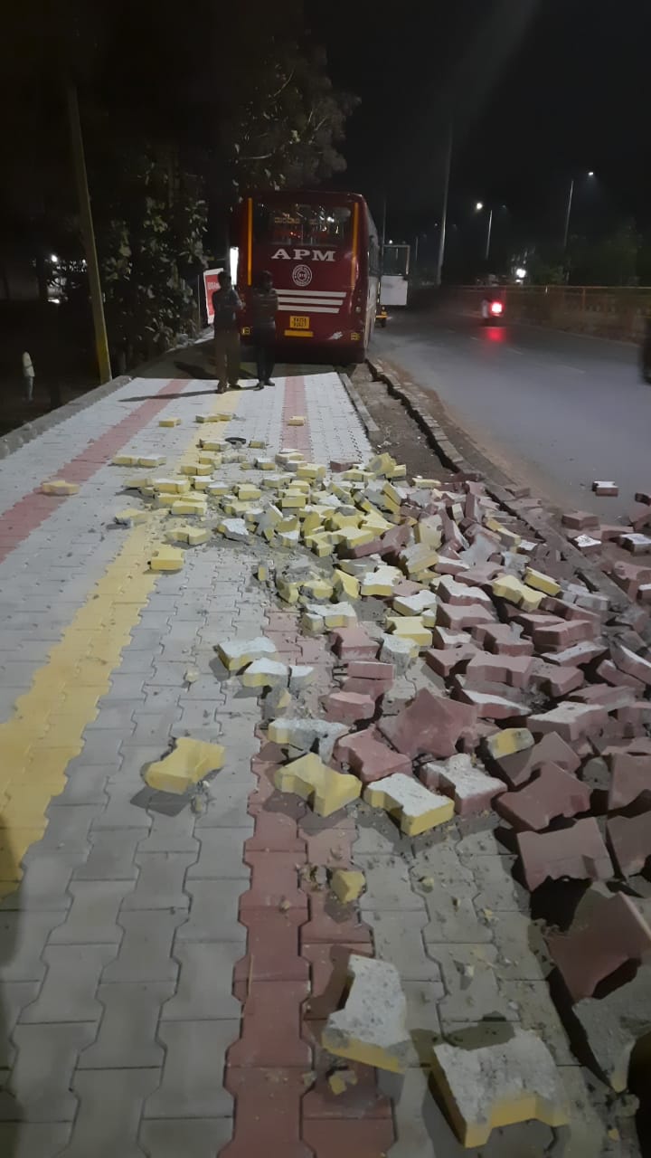 ಹುಬ್ಬಳ್ಳಿಯಿಂದ ಧಾರವಾಡದತ್ತ ಬರುತ್ತಿದ್ದ ಸಮಯದಲ್ಲಿ ಅಡ್ಡ ಬಂದ ಶ್ವಾನವನ್ನ ತಪ್ಪಿಸಲು ಹೋಗಿರುವ ಬೇಂದ್ರೆ ಬಸ್ ಚಾಲಕ, ನಿಯಂತ್ರಣ ತಪ್ಪಿ ಪುಟ್ ಪಾತ್ ಮೇಲೆ ಬಸ್ಸನ್ನ ಹತ್ತಿಸಿದ್ದಾನೆ. ಇದರಿಂದ ಚಾಲಕನಿಗೆ ಸ್ಟೇರಿಂಗ್ ಬಡಿದು ತಲೆಗೆ ಗಾಯಗಳಾಗಿದ್ದು, ಆಸ್ಪತ್ರೆಗೆ ದಾಖಲು ಮಾಡಲಾಗಿದೆ. ಬೇಂದ್ರೆ ಬಸ್ಸಿನ ಅವಘಡದಿಂದ ಹೊಸದಾಗಿ ಹಾಕಿದ್ದ ಪುಟ್ ಪಾತ್ ಕೆಟ್ಟು ಹೋಗಿದೆ.