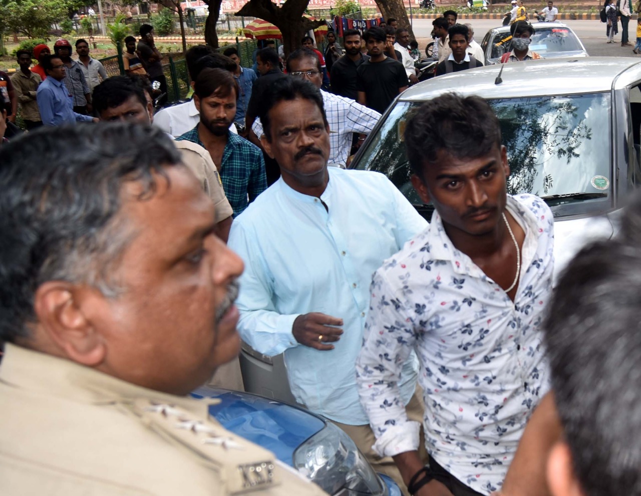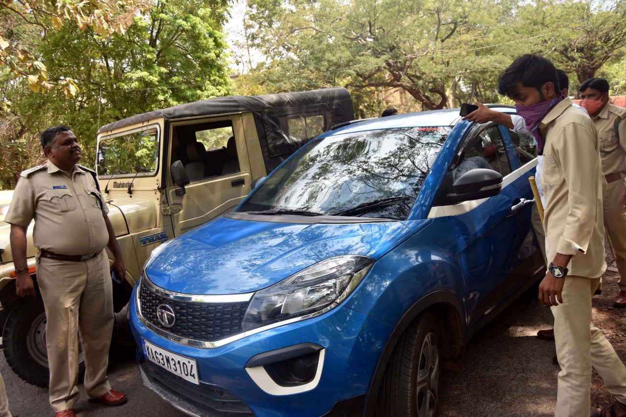 ಕಾರಿನಲ್ಲಿ ತಪ್ಪಿಸಿಕೊಂಡು ಹೋಗುತ್ತಿದ್ದವರನ್ನ ವಶಕ್ಕೆ ಪಡೆಯುತ್ತಿರುವ ದೃಶ್ಯ..