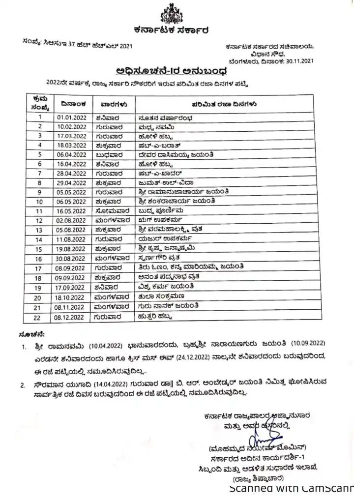 ಹೊಸ ವರ್ಷವಾದ 2022ರಲ್ಲಿ ಒಟ್ಟು 22 ರಜೆಗಳನ್ನ ಘೋಷಣೆ ಮಾಡಿದ್ದು, ಅದರಲ್ಲಿ ಮಾರ್ಚ 17ಕ್ಕೆ ಹಾಗೂ ಏಪ್ರೀಲ್ 16ಕ್ಕೆ ಎರಡು ಸಲ ಹೋಳಿ ಹುಣ್ಣಿಮೆ ರಜೆಯನ್ನ ಘೋಷಣೆ ಮಾಡಿದೆ.