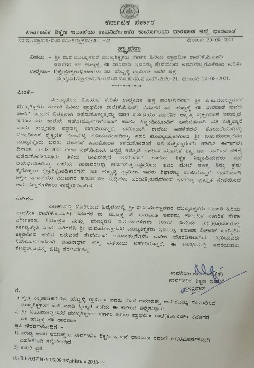 ನವನಗರದ “ಹೆಡ್ ಮಾಸ್ಟರ್” ಸಸ್ಪೆಂಡ್: ಕರ್ನಾಟಕವಾಯ್ಸ್.ಕಾಂ ಇಂಪ್ಯಾಕ್ಟ್…!