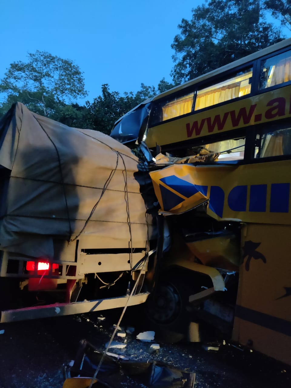 ಹುಬ್ಬಳ್ಳಿ-ಅಂಕೋಲಾ ಮಧ್ಯ ಲಾರಿಗೆ ಡಿಕ್ಕಿ ಹೊಡೆದ ಖಾಸಗಿ ಬಸ್