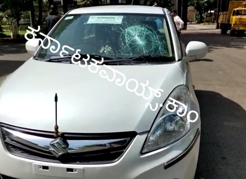 ಹುಬ್ಬಳ್ಳಿ ಮಹಾನಗರ ಪಾಲಿಕೆಯಲ್ಲಿ ನಿಲ್ಲಿಸಿದ್ದ ವಾಹನಗಳ ಮೇಲೆ ಕಲ್ಲಿನಿಂದ ದಾಳಿ.