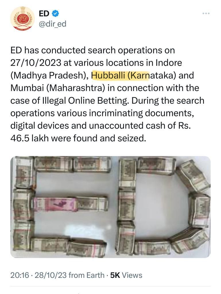 ಹುಬ್ಬಳ್ಳಿಯಲ್ಲಿ “ED” ರೇಡ್: ಸಿಕ್ಕಿ ಬಿದ್ದವನ ಅಸಲಿ ಹೆಸರೇನು ಗೊತ್ತಾ…!?
