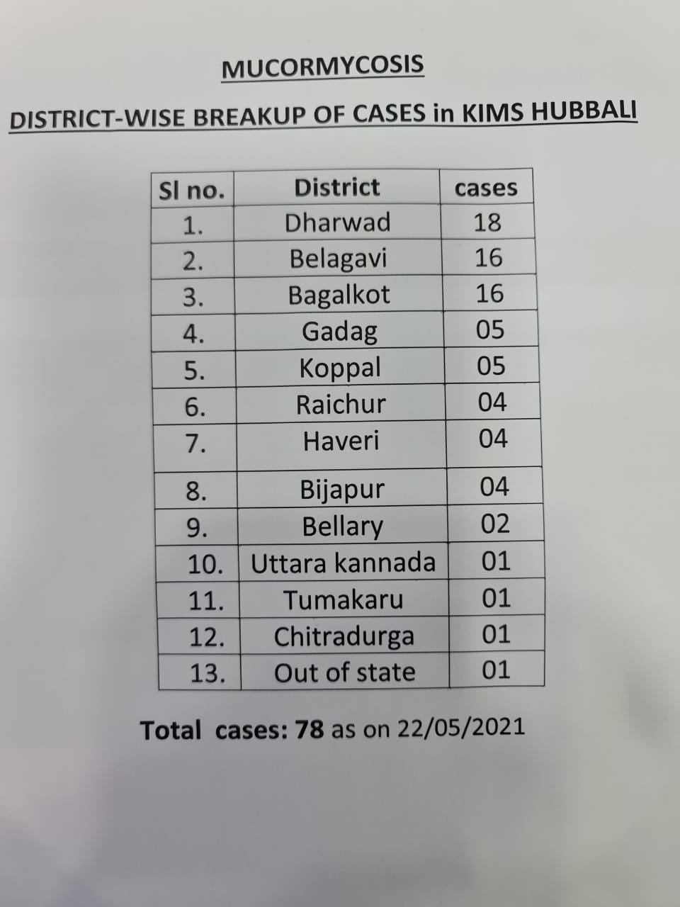 ಹುಬ್ಬಳ್ಳಿ ಕಿಮ್ಸನಲ್ಲಿ 78 ಬ್ಲ್ಯಾಕ್ ಪಂಗಸ್ ರೋಗಿಗಳು….!