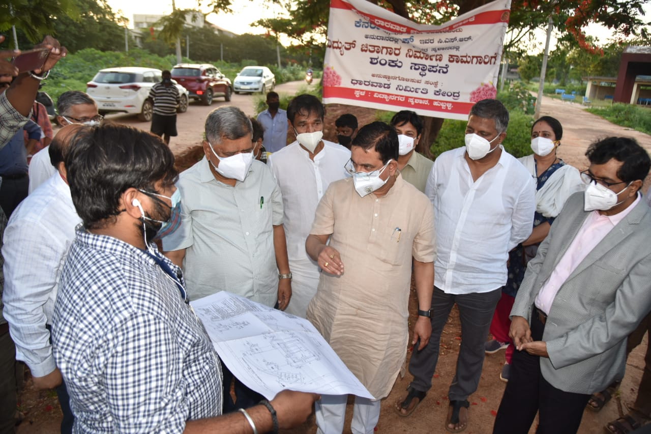 ಹುಬ್ಬಳ್ಳಿ: ಹುಬ್ಬಳ್ಳಿ ವಿದ್ಯಾನಗರ ಸ್ಮಶಾನದಲ್ಲಿ ನೂತನವಾಗಿ ನಿರ್ಮಿಸಲಾಗುತ್ತಿರುವ ವಿದ್ಯುತ್ ಚಿತಾಗಾರ ಭೂಮಿ ಪೂಜೆಯನ್ನು ಬೃಹತ್ ಮತ್ತು ಮಧ್ಯಮ ಕೈಗಾರಿಕೆ ಸಾರ್ವಜನಿಕ ಉದ್ದಿಮೆ ಹಾಗೂ ಜಿಲ್ಲಾ ಉಸ್ತುವಾರಿ ಸಚಿವ ಜಗದೀಶ್ ಶೆಟ್ಟರ್ ಹಾಗೂ ಕೇಂದ್ರ ಸಂಸದೀಯ ವ್ಯವಹಾರಗಳು ಹಾಗೂ ಗಣಿ ಮತ್ತು ಕಲ್ಲಿದ್ದಲು ಸಚಿವ ಪ್ರಲ್ಹಾದ್ ಜೋಶಿ ನೆರವೇರಿಸಿದರು.