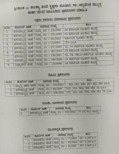 ಯಾವ ಯಾವ ಠಾಣೆಯಲ್ಲಿ ಯಾವ್ಯಾವ ಕೇಸ್ ಇದೆ ಎಂಬ ವಿವರ ಇಲ್ಲಿದೆ ನೋಡಿ…