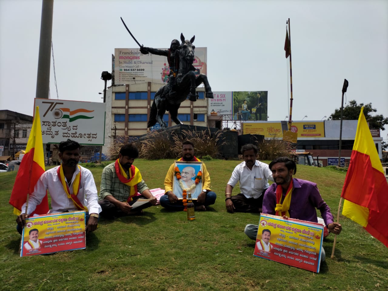 ಗಾಂಧೀಜಿ ಭಾವಚಿತ್ರದ ಮುಂದೆ “ಫುಲ್ ಬಾಟಲ್ ವಿಸ್ಕಿ”- ಹುಬ್ಬಳ್ಳಿಯಲ್ಲಿ ನಡೆಯುತ್ತಿದೆ ‘ದಾರೂ’ ಹೋರಾಟ…