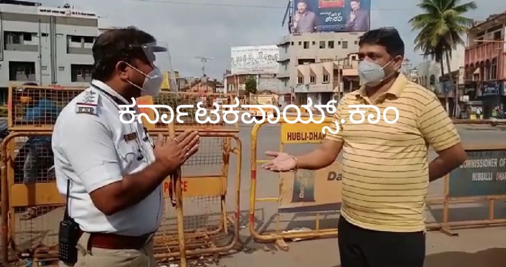 ಹುಬ್ಬಳ್ಳಿ: ನಗರದಲ್ಲಿ ಸಂಪೂರ್ಣ ಲಾಕ್ ಡೌನ್ ಮಾಡಿ ಆದೇಶ ಮಾಡಿರುವ ಹಿನ್ನೆಲೆಯಲ್ಲಿ ತಪಾಸಣೆಗೆ ಇಳಿದ ಉತ್ತರ ಸಂಚಾರಿ ಠಾಣೆ ಇನ್ಸಪೆಕ್ಟರ್ ಶ್ರೀಕಾಂತ ತೋಟಗಿ ಬೆಳ್ಳಂಬೆಳಿಗ್ಗೆ ತಪ್ಪು ಮಾಡಿದವರ ಕೈ ಮುಗಿಯುವ ಸ್ಥಿತಿಗೆ ತಲುಪಿದ್ದರು.