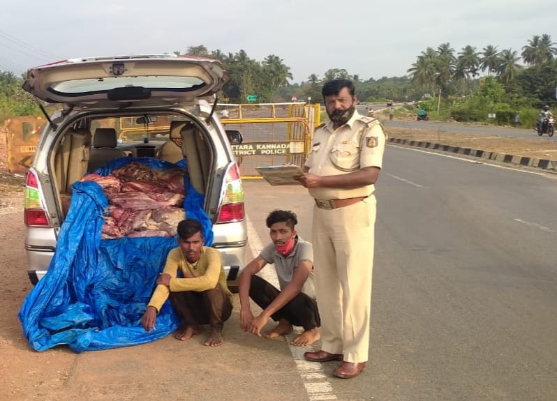 ಇವರಿಬ್ಬರು ಸಿಲ್ವರ ಬಣ್ಣದ ಇನೋವಾ ಕಾರಿನಲ್ಲಿ ಸುಮಾರು 80 ಸಾವಿರ ಮೌಲ್ಯದ 400 ಕೆಜಿ ಆಗುವಷ್ಟು ದನದ ಮಾಂಸವನ್ನು ಮಾರಾಟ ಮಾಡುವ ಉದ್ದೇಶದಿಂದ  ಯಾವುದೇ ಪರವಾನಿಗೆ ಇಲ್ಲದೇ. ಎಲ್ಲಿಂದಲೋ ಕಳುವು ಮಾಡಿಕೊಂಡು ವಾಹನದಲ್ಲಿ ತುಂಬಿಕೊಂಡು ಸಾಗಾಟ ಮಾಡುತ್ತಿರುವಾಗ ಶಿರಾಲಿ ಚೆಕ್ ಪೋಸ್ಟ್ ನಲ್ಲಿ ಕಾರನ್ನು ಅಡ್ಡಗಟ್ಟಿ ದನದ ಮಾಂಸ ಹಾಗೂ ಆರೋಪಿಗಳನ್ನು ವಶಪಡಿಸಿಕೊಂಡಿದ್ದಾರೆ