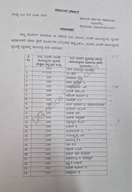 ಸಚಿನ ಚೆಲವಾದಿ, ಸೋಮಶೇಖರ ಜುಟ್ಟಲ, ಎಂ.ದಿವಾಕರ ಸೇರಿ 30 ಇನ್ಸಪೆಕ್ಟರ್ಗಳಿಗೆ ಪ್ರಮೋಷನ್…