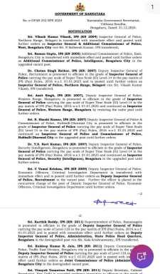 N.ಶಶಿಕುಮಾರ, ಧರ್ಮೇಂದ್ರಕುಮಾರ ಮೀನಾ, ಗುಳೇದ, ಹನಮಂತರಾಯ, ಸೀಮಾ ಲಾಟಕರ ಸೇರಿ “65” IPSಗಳಿಗೆ ಪ್ರಮೋಷನ್…