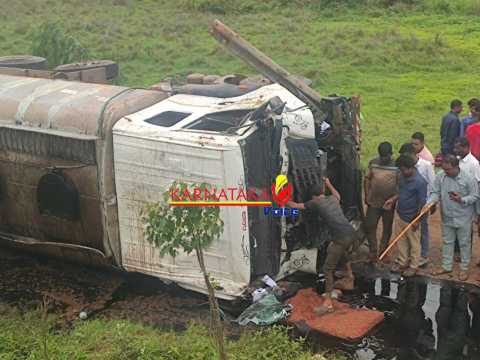 ಇಟಗಿ ಕ್ರಾಸ್ ಬಳಿ ಹೈವೇನಲ್ಲಿ ಕೆಲಸ ಮಾಡುತ್ತಿದ್ದವರ ಮೇಲೆ ಟ್ಯಾಂಕರ್ ಪಲ್ಟಿ- 4 ಸಾವು, ಛಿದ್ರವಾದ ದೇಹಗಳು… Breaking