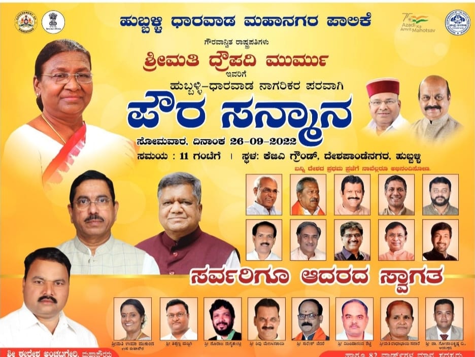 ಹುಬ್ಬಳ್ಳಿ: ರಾಷ್ಟ್ರಪತಿ ದ್ರೌಪದಿ ಮುರ್ಮು ಅವರು ನಾಳೆ ವಾಣಿಜ್ಯ ನಗರಿ ಹುಬ್ಬಳ್ಳಿಯಲ್ಲಿ ಆಯೋಜಿಸಿರುವ ಪೌರ ಸನ್ಮಾನ ಕಾರ್ಯಕ್ರಮದಲ್ಲಿ ಭಾಗಿಯಾಗಲಿದ್ದು, ಸಕಲ ಸಿದ್ದತೆ ಮಾಡಿಕೊಳ್ಳಲಾಗಿದೆ. ಆದ್ರೆ ಕಾರ್ಯಕ್ರಮದ ಪರಶೀಲನೆ ನಡೆಸಿದ ಸೆಂಟ್ರಲ್ ಕ್ಷೇತ್ರದ ಶಾಸಕ ಹಾಗೂ ಮಾಜಿ ಮುಖ್ಯಮಂತ್ರಿ ಜಗದೀಶ್ ಶೆಟ್ಟರ್ ಅವರಿಗೆ ವೇದಿಕೆ ಕಾರ್ಯಕ್ರಮದಲ್ಲಿ ಸ್ಥಾನವೇ ಇಲ್ಲ.
