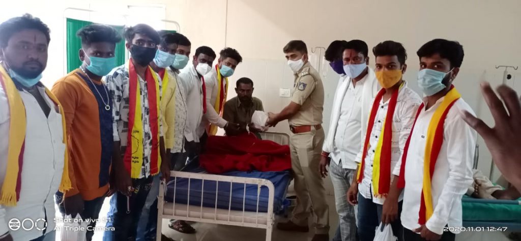 ನವಲಗುಂದ: ಕನ್ನಡ ರಾಜ್ಯೋತ್ಸವದ ಅಂಗವಾಗಿ ಕರ್ನಾಟಕ ರಕ್ಷಣಾ ವೇದಿಕೆಯ ಶಿವರಾಮೇಗೌಡ್ರ  ಬಣದ ಕಾರ್ಯಕರ್ತರು ಸರ್ಕಾರಿ ತಾಲೂಕಾ ಆಸ್ಪತ್ರೆಯ ಬಡ ರೋಗಿಗಳಿಗೆ ಹಣ್ಣು-ಹಂಪಲ ವಿತರಣೆ ಮಾಡಿದರು.